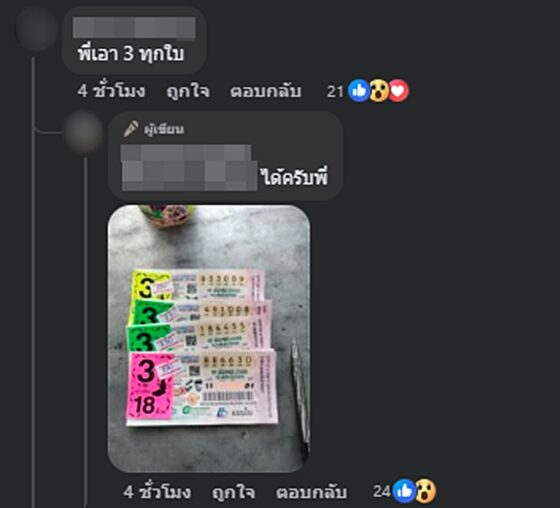 ซึ่งในโพสต์ดังกล่าวที่ นายกฤษดา โพสต์ ได้มี นายสีหนาท ผู้อำนวยการโรงเรียนแห่งหนึ่ง ในเขตมีนบุรี เข้ามาตอบคอมเมนต์ดังกล่าวว่า “พี่เอา 3 ทุกใบ” ซึ่งเลขชุด 3 ใบนั้นเหลืออยู่จำนวน 4 ชุด โดยหนึ่งในนั้นมีหมายเลข 833009 รางวัลที่ 1 อยู่ด้วย